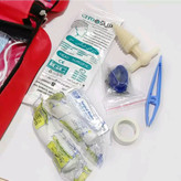 درون این جعبه ۲۷ قلم از جمله بتادین، پد چشمی، چسب باند، قیچی،پنس، چسب حلقهای، پتوی نجات، آتل انگشتی، پانسمان آماده، تیغ بیستوری، سرجی فیکس سر، دستمال سه گوش، گاز وازلینه، ماسک، گاز استریل، باند کشی، باند دوربافت، پنبه، سنجاق قفلی، پد الکلی، دستکش ، سوت،سرنگ، رسیور،دهان بازکن،تنفس دهان به دهان،آچار همه کاره وجود دارد.