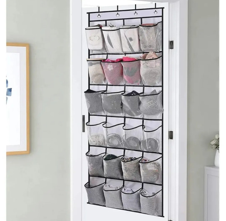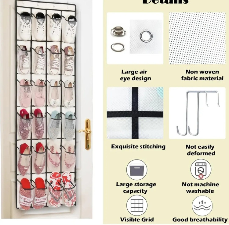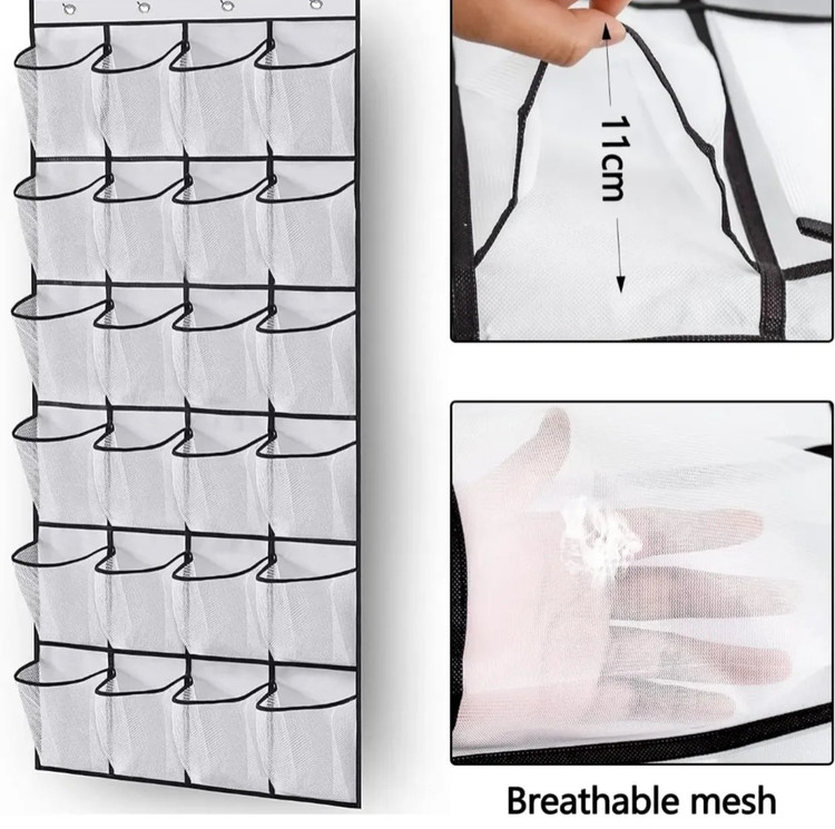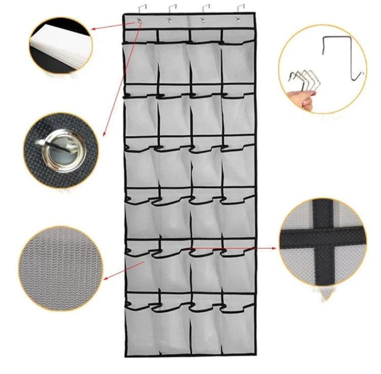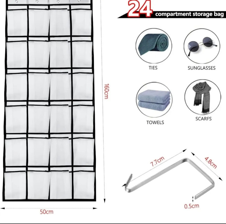 -این نظمدهنده پشت دری محصول با کیفیت ترکیه ای است از جنس پارچه و توری دارای 24 خانه و پارت برای آویزان کردن وسایل حمام، دستمال و لوازم سبک آشپزخانه و لباس و اکسسوری و همینطور کفش با اشغال جای کم