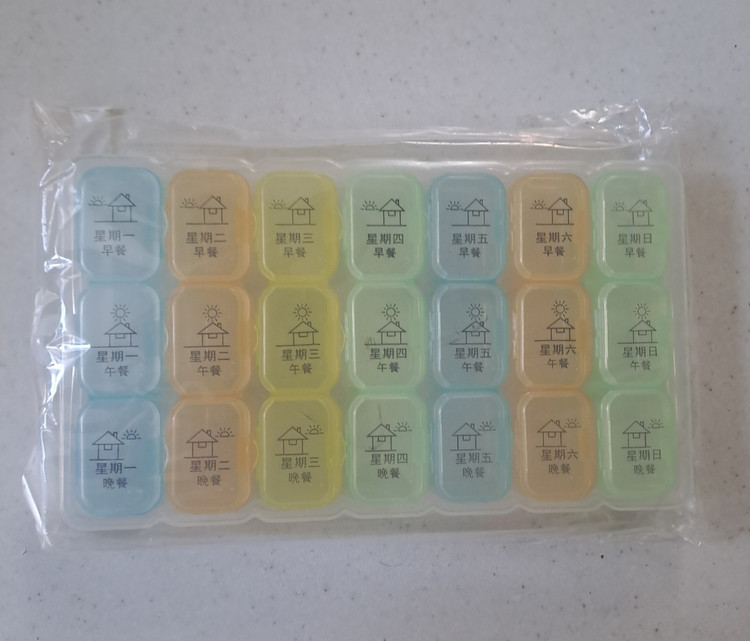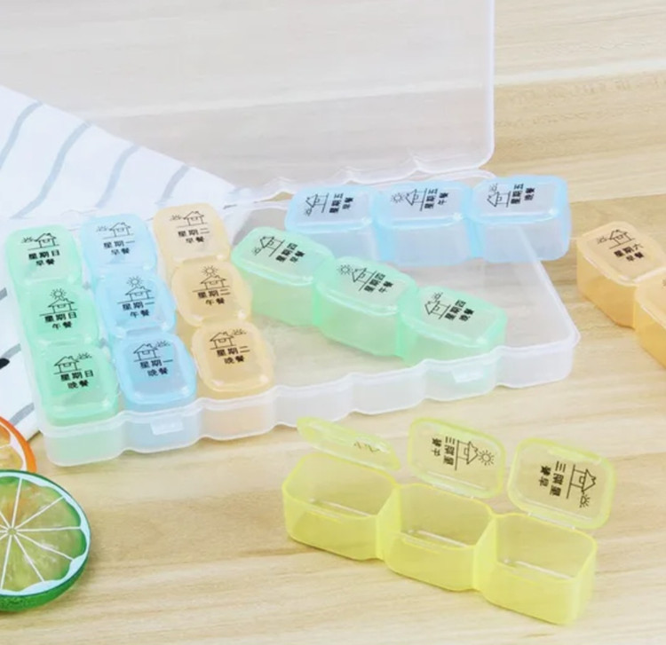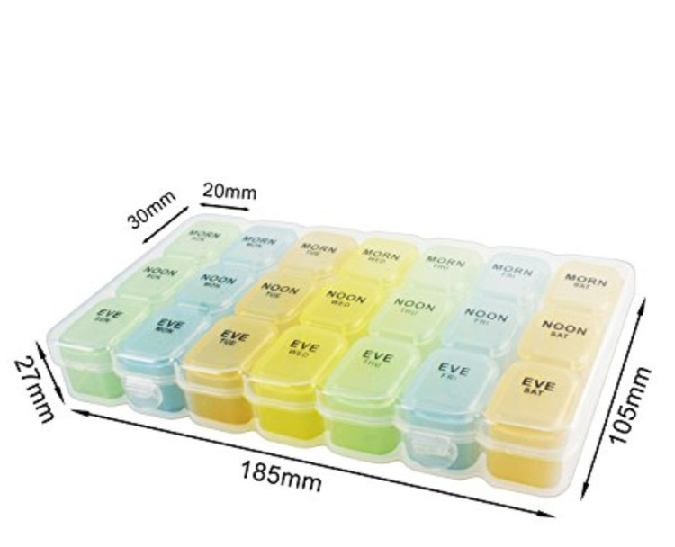 ۷ باکس سه محفظه ای برای جداسازی قرص ها در تایم صبح ظهر و شب در هر روز