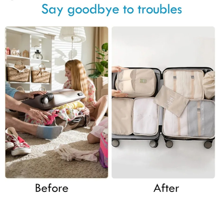 این ست دارای دستهای برای حمل آسان است. بسیار سبک و تاشو بوده و میتوانید آنها را تا کرده و در چمدان خود قرار دهید.همچنین بعد از سفر میتوانید به عنوان ارگنایزر لباس ها و لوازم آرایشی بهداشتی از این بگ ها استفاده کنید.