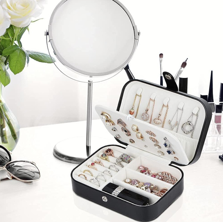 Travel Jewelry Box, PU Leather Small Jewelry Organizer for Women Girls