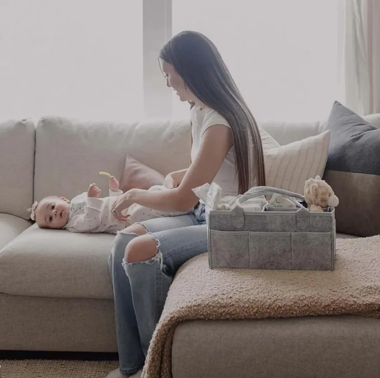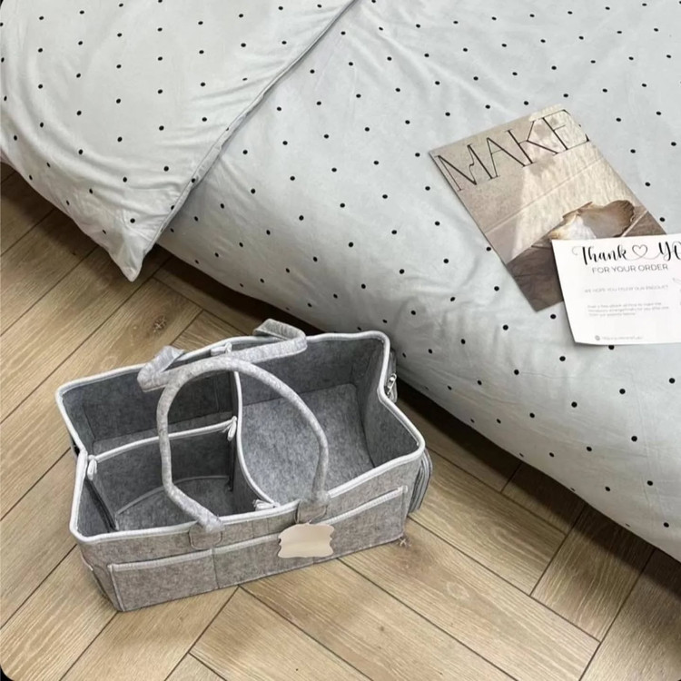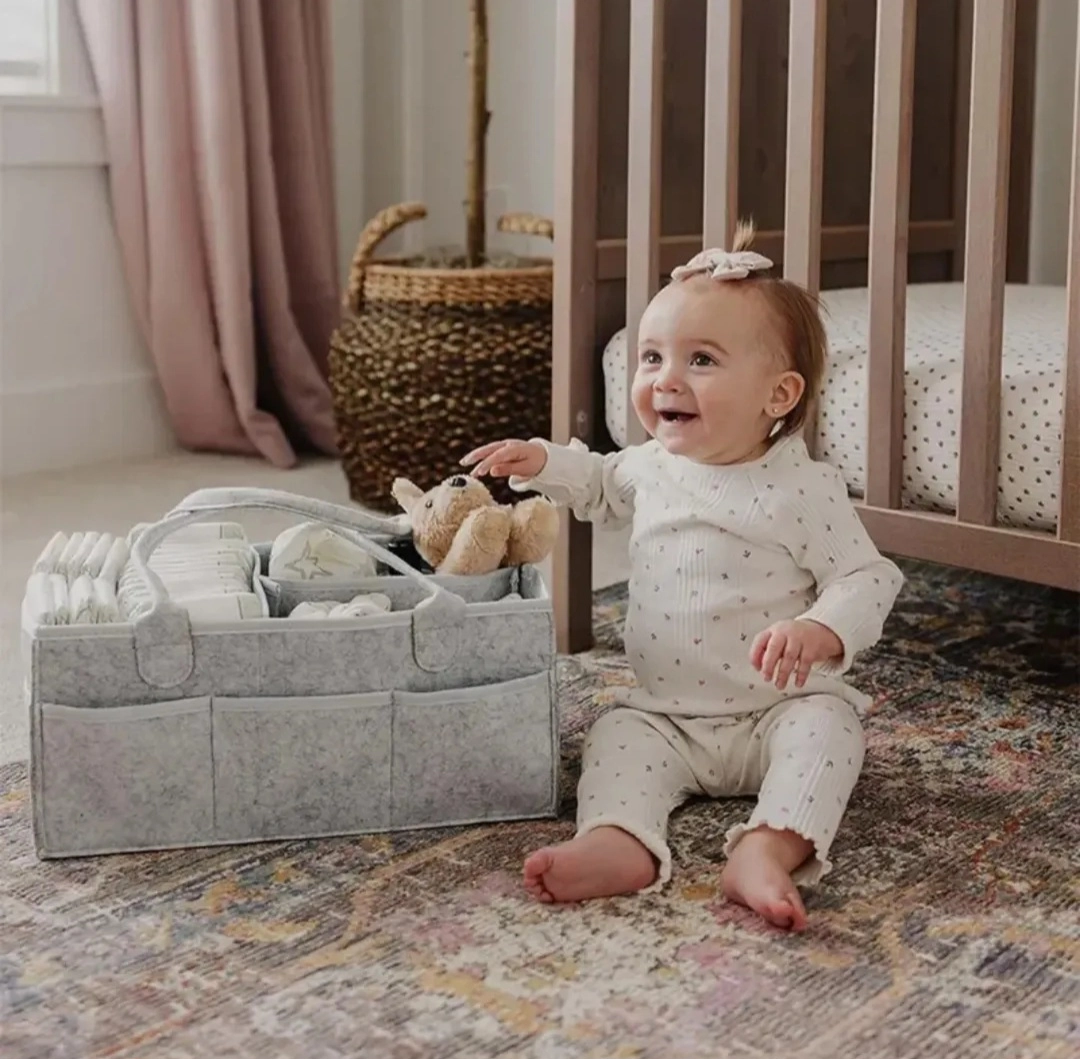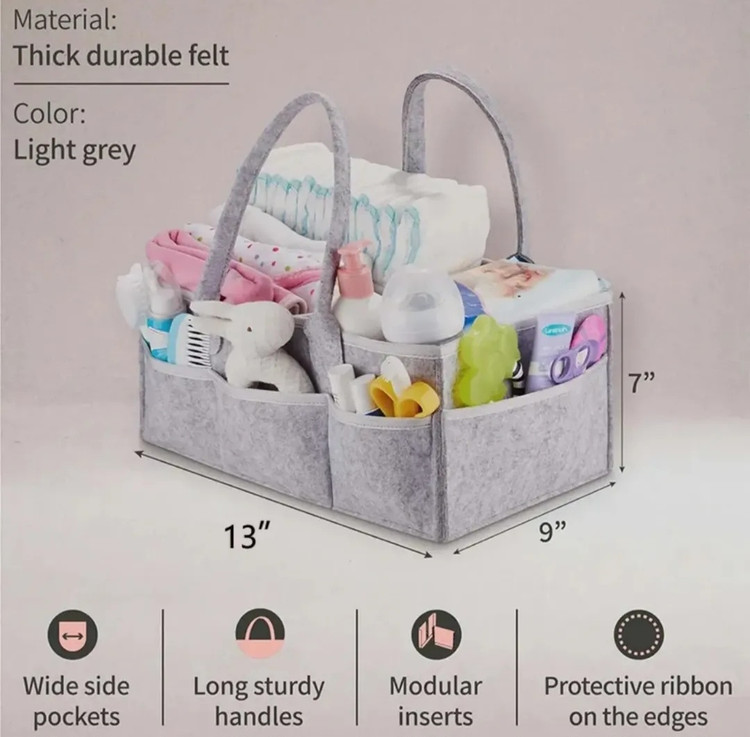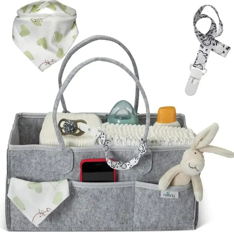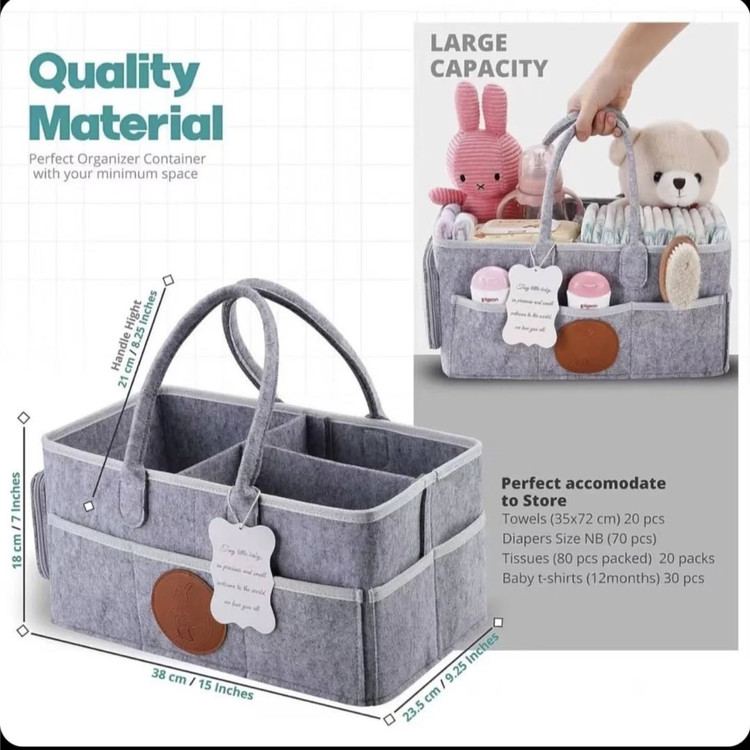 ارگانایزر لوازم کودک این کیف نظم دهنده وسایل مادز و نوزاد واقعا کاربردی هست و تمام وسایل موردنیاز نوزاد مثل لوازم بهداشتی..دستمال..پیشبند..شیشه شیر..عروسک و رو در دسترس مادر قرار میده جنس نمدی درجه یک قابل شستشو دارای جیب ها و فضاهای زیاد ارگانایز شده ابعاد40×25×18