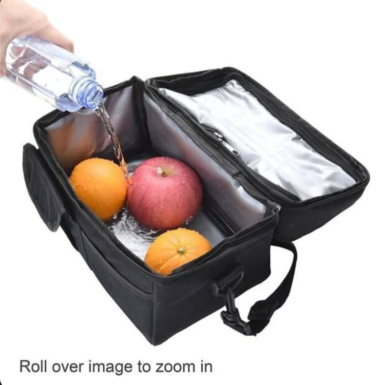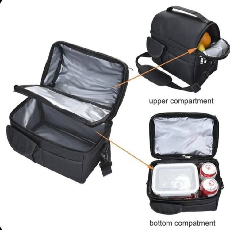 لانچ بگ shemstar طراحی حرفه ای کاربردی و جادار دارای دو محفظه جداگانه برای نگهداری ظرف غذا و میوه جات لایه خارجی برزنتی و مقاوم در برابر ضربه و خراش لایه میانی فوم عایق برای حفظ دمای غذا لایه داخلی آستری ضدآب و بهداشتی دارای چندین جیب بیرونی دارای بند دوشی قابل تنظیم مناسب استفاده کارمندان در محل کار و همینطور در مسافرت و طبیعت گردی